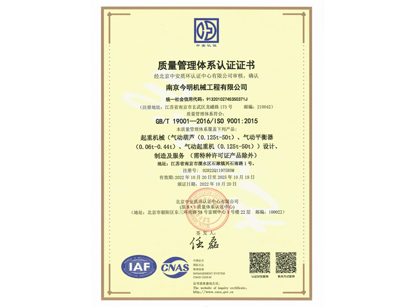 南京今明機(jī)械工程有限公司成立于一九九三年,歷經(jīng)二十多年磨練,沉淀了一批跟隨企業(yè)共同成長,技藝超凡、資深的高級工程師、技師、以及熟練的技術(shù)工人。企業(yè)的歷練和人才的智慧,鑄造出企業(yè)的核心競爭力。十年磨一劍。本著技術(shù)興業(yè),多年來,企業(yè)致力于氣動起重產(chǎn)品的研發(fā)與生產(chǎn)。在國內(nèi)氣動起重裝備領(lǐng)域具有良好的聲譽(yù)。并積極地與國家起重運(yùn)輸機(jī)械質(zhì)量監(jiān)督檢驗(yàn)中心、北京起重運(yùn)輸機(jī)械設(shè)計(jì)研究院、江蘇省科技廳、南航等高校和科研單位緊密合作,與國外知名企業(yè)建立戰(zhàn)略合作伙伴關(guān)系,廣泛吸收國內(nèi)外新技術(shù)經(jīng)驗(yàn),力求趕超國際先進(jìn)氣動起重裝備的技術(shù),打造國內(nèi)氣動起重裝備行業(yè)新軍。目前,企業(yè)已開發(fā)五大系列近百個品種的產(chǎn)品,覆蓋了化工、汽車、機(jī)械、冶金、礦山等二十多個行業(yè),并在全國三十多個省份擁有客戶。企業(yè)堅(jiān)持用心做好每個環(huán)節(jié),精心打造讓客戶滿意的產(chǎn)品,力求...瀏覽更多 +
